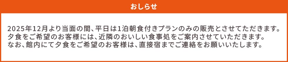 - 館内風呂/ひのき風呂の2つのお風呂があり、お湯かけ流しのお風呂が楽しめます。